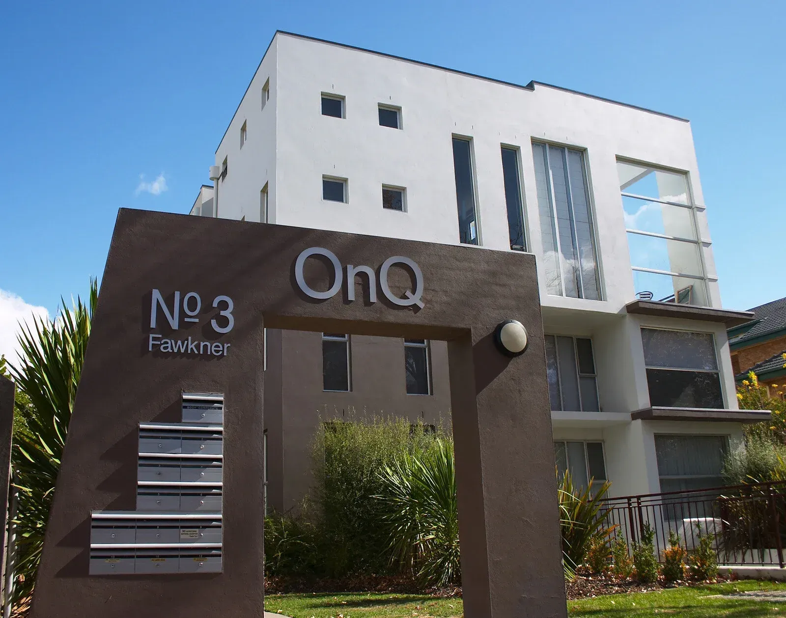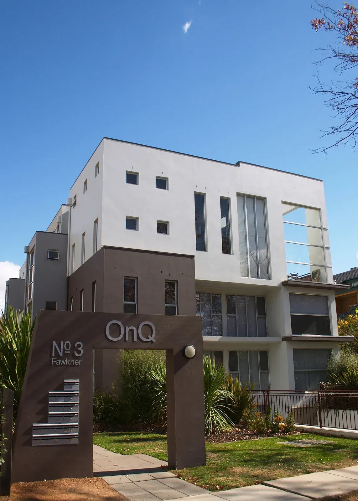 A three storey apartment building within walking distance of the city, OnQ comprises 12 boutique apartments with secure basement parking.